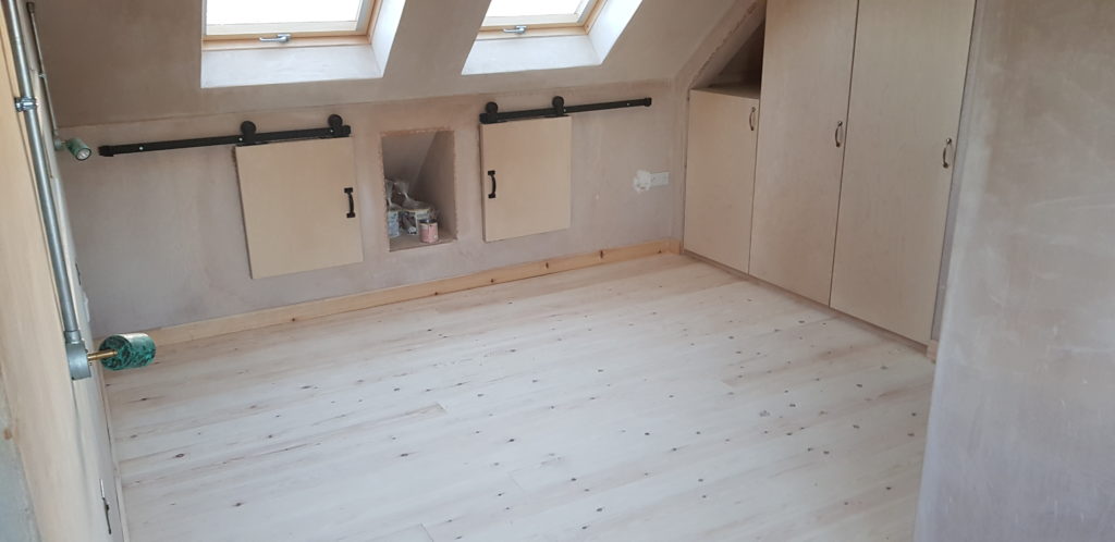 Wood fibre insulation was used throughout with a lime plaster finish. This ensured that the loft not only used sustainable materials, but that it would have great levels of thermal performance and good levels of breathability.